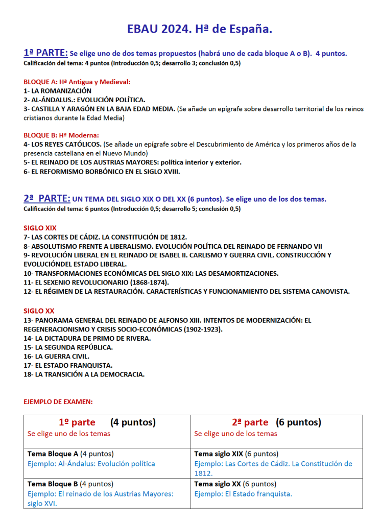 Os pongo aquí TODOS los temas y comentarios para la EBAU.