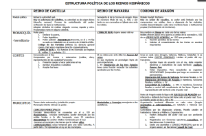 Cuadro síntesis sobre la organización política de los reinos de Castilla, Navarra y la Corona de Aragón